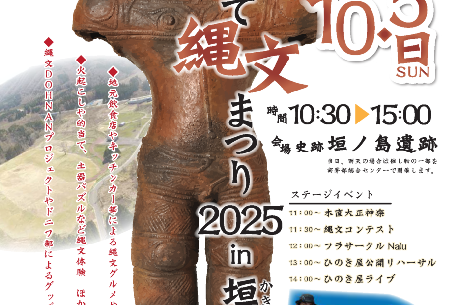 国宝土偶発見50年・縄文世界遺産登録4周年を記念して10月5日(日) 函館市垣ノ島遺跡函館市南茅部総合センターにて「はこだて縄文まつり 2025 」を開催します!!