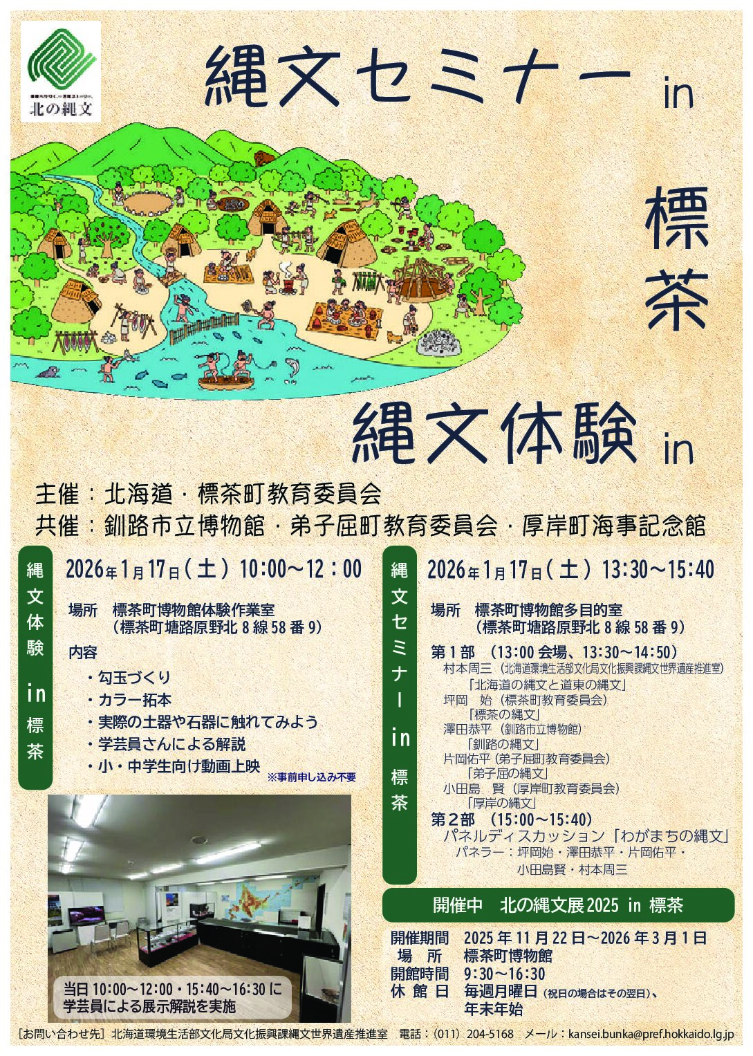 2026年1月17日(土)に縄文体験in標茶と縄文セミナーin標茶が開催されます。
